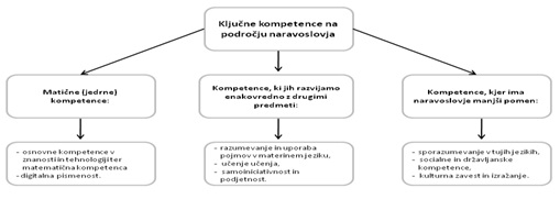 Med jedrnimi kompetencami sta za naravoslovne predmete nedvomno matični matematična kompetenca ter osnovne kompetence v znanosti in tehnologiji ter digitalna pismenost. Predmet tega zapisa so predvsem osnovne kompetence v naravoslovju in tehnologiji. Opis in razlago te kompetence povzemamo v celoti (Uradni list Evropske unije L 394/13).